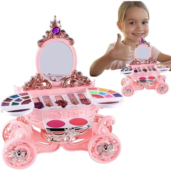 Kinder waschbares Make -up -Spielzeug, Kosmetikkits Kleinkind,Mädchen Spielen Make -up -Kit mit Kosmetikkoffer | Tragbare tauende Kinder Vanity Beauty Set für Zuhause, Schlafzimmer, Schule