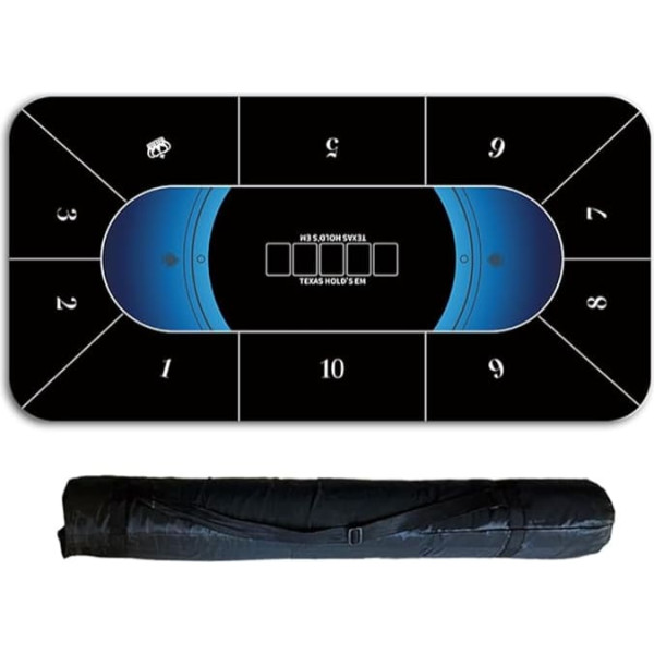 PREMIUM - The Texas Hold'em Poker table mat is made of high elastic rubber and multi spandex, with carefully sublimated print layout. The table mat has stitched edges that can prevent wear. Ensures prolonged use without deformation and degumming. Easy to clean - The rubber base of the layout mat with herringbone structure increases friction. It can hold the table firmly when it lies completely flat and after rolling out. It also protects your table from drinks, crumbs and scratches. If liquid is spilled on the mat, you can simply wipe it with a towel without interrupting your game. Easy to store - The play mat can be easily rolled up and stored on a table to save space. Also included is a carry bag that allows you to carry the play mat comfortably. So you can easily take the play mat with the included carry bag when you are hosting a party or game night outside or go camping. PRODUCT SIZE AND CUSTOMER SERVICE - The poker mat measures 47.2 x 23.6 inches (1.2 x 0.6 m) and fits most rectangular tables. If you have any questions about our play table mat, please feel free to contact us. ULTIMATE GIFT IDEA The casino poker chip set is a classic table game that people of all ages really love. The game chips are a great gift idea for children and adults for birthdays, Christmas and other holidays. › See more product details; Product description Poker Table Top 1.8 x 0.9 M, Texas Hold'em Poker Mat Up to 6 Players, Poker Table Mat Layout with Storage Bag Poker Games, Blackjack, Casino - Made of safe and light rubber, this rectangle table cover will not ravel nor fray, can be used long time. - Satisfy your travel and party needs. Fit most poker game tablecloth. Easy to carry and store to places you need. - After using this mat, reduce the noise when you play poker. - Game table cover can be used poker tournaments, role-playing games, or dice games. - Printed pattern design, can also achieve good decorative effect and bring your table a new look. - Colour: black. - :Rubber -Size: 180 x 90 x 0.2 cm / 70.86 x 35.43 x 0.1 inches. - Note: Suitable for 8-10 people. Package includes: 1 x carrying case. 1 x poker mat.; Product description Poker Table Top 1.8 x 0.9 M, Texas Hold'em Poker Mat Up to 6 Players, Poker Table Mat Layout with Storage Bag Poker Games, Blackjack, Casino - Made of safe and light rubber, this rectangle table cover will not ravel nor fray, can be used long time. - Satisfy your travel and party needs. Fit most poker game tablecloth. Easy to carry and store to places you need. - After using this mat, reduce the noise when you play poker. - Game table cover can be used poker tournaments, role-playing games, or dice games. - Printed pattern design, can also achieve good decorative effect and bring your table a new look. - Colour: black. - :Rubber -Size: 180 x 90 x 0.2 cm / 70.86 x 35.43 x 0.1 inches. - Note: Suitable for 8-10 people. Package includes: 1 x carrying case. 1 x poker mat.; Poker Table Top 1.8 x 0.9 M, Texas Hold'em Poker Mat Up to 6 Players, Poker Table Mat Layout with Storage Bag Poker Games, Blackjack, Casino - Made of safe and light rubber, this rectangle table cover will not ravel nor fray, can be used long time. - Satisfy your travel and party needs. Fit most poker game tablecloth. Easy to carry and store to places you need. - After using this mat, reduce the noise when you play poker. - Game table cover can be used poker tournaments, role-playing games, or dice games. - Printed pattern design, can also achieve good decorative effect and bring your table a new look. - Colour: black. - :Rubber -Size: 180 x 90 x 0.2 cm / 70.86 x 35.43 x 0.1 inches. - Note: Suitable for 8-10 people. Package includes: 1 x carrying case. 1 x poker mat.
