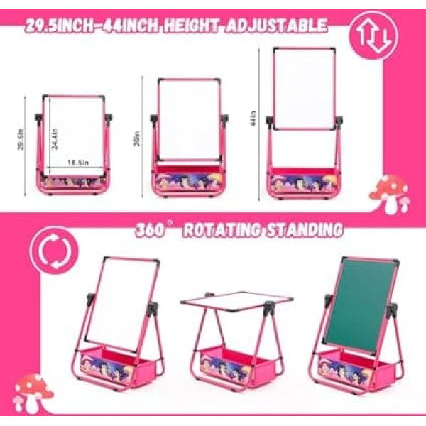 KIDS IRON EASEL This kids metal board with paper roller, double sided whiteboard and blackboard. It promotes children's interest in drawing and stimulates their imagination and creativity. Sturdy: the material is safe and the writing surface is smooth. The panels are designed to prevent scratches. Flexible, durable and scratch resistant surface makes writing and erasing easy without leaving marks. This art easel for kids is made of thick iron material, which is sturdy and not easy to deform. ADJUSTABLE HEIGHT You can adjust the height of the easel by turning the knobs on both sides of the frame. You can adjust it to the most suitable height according to your child's height. The height adjustment range is 29.5 \; Product description Kids Easel Iron Double Sided Whiteboard and Blackboard with Storage Bag and Stickers Foldable Drawing Board Height Adjustable Metal Chalkboard for Boys Girls; Product description Kids Easel Iron Double Sided Whiteboard and Blackboard with Storage Bag and Stickers Foldable Drawing Board Height Adjustable Metal Chalkboard for Boys Girls; Kids Easel Iron Double Sided Whiteboard and Blackboard with Storage Bag and Stickers Foldable Drawing Board Height Adjustable Metal Chalkboard for Boys Girls