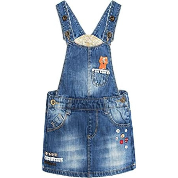 KIDSCOOL SPACE Girls Bib Pocket Adjustable Straps Casual Denim Jumpsuit Dress