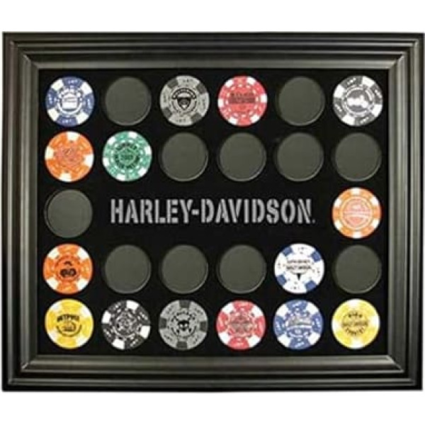 Stands up/mounted on wall Black wooden frame 26 chip capacity Acrylic front Dimensions 33 1/2 inch x 11 1/2 inch › See more product details; Product description Harley-Davidson Poker Chip Collectors Frame 6927 Stands on your counter or can be attached to your wall. Black wooden frame with acrylic front. Black flock insert keeps chips securely in place. Measures 13.5\; Product description Harley-Davidson Poker Chip Collectors Frame 6927 Stands on your counter or can be attached to your wall. Black wooden frame with acrylic front. Black flock insert keeps chips securely in place. Measures 13.5\; Harley-Davidson Poker Chip Collectors Frame 6927 Stands on your counter or can be attached to your wall. Black wooden frame with acrylic front. Black flock insert keeps chips securely in place. Measures 13.5\
