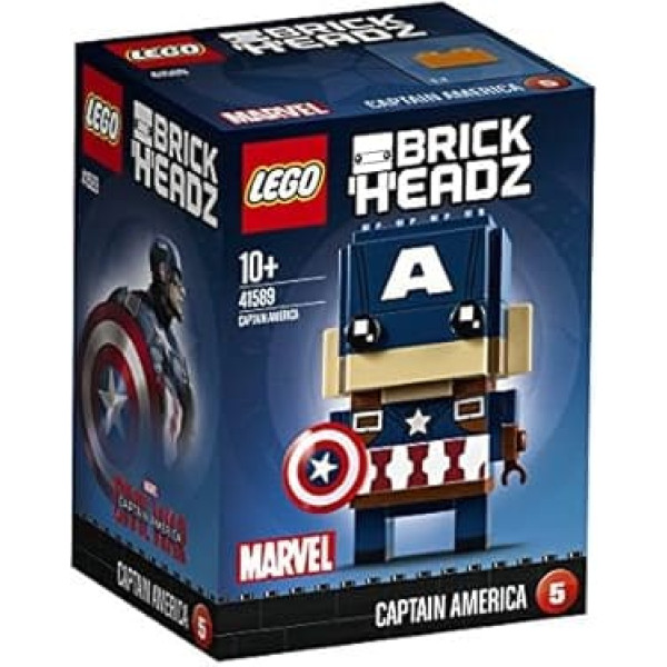 As a buildable LEGO BrickHeadz character, Captain America features colourful authentic details, BrickHeadz eyes, a removable shield and a stand plate. Each buildable LEGO BrickHeadz character comes with a collector's plate with serial number and BrickHeadz symbol. Have fun collecting the buildable LEGO BrickHeadz characters. Complete your collection with more classic characters from movies, TV series, games and comics. Mix up your buildable LEGO BrickHeadz characters to create super cool combinations or your own fascinating characters. Without a stand plate, the figure is 7 cm tall. › See more product details; Product description Product Description The new buildable LEGO® BrickHeadz characters released in March 2017 give you a whole new way to collect, build and show off the legendary characters from your hotly beloved movies, TV series, games and comics. It's great fun to build this buildable BrickHeadz character from colourful LEGO System bricks and recreate all the legendary details of Captain America, including his detailed outfit and headpiece. It holds a sign in his hand and can be conveniently displayed on a stand with serial number and BrickHeadz symbol. This figurine adds a touch of adventure and action to any room or office. Safety Warning Warning: not suitable for children under 36 months; Product description Product Description The new buildable LEGO® BrickHeadz characters released in March 2017 give you a whole new way to collect, build and show off the legendary characters from your hotly beloved movies, TV series, games and comics. It's great fun to build this buildable BrickHeadz character from colourful LEGO System bricks and recreate all the legendary details of Captain America, including his detailed outfit and headpiece. It holds a sign in his hand and can be conveniently displayed on a stand with serial number and BrickHeadz symbol. This figurine adds a touch of adventure and action to any room or office. Safety Warning Warning: not suitable for children under 36 months; Product Description The new buildable LEGO® BrickHeadz characters released in March 2017 give you a whole new way to collect, build and show off the legendary characters from your hotly beloved movies, TV series, games and comics. It's great fun to build this buildable BrickHeadz character from colourful LEGO System bricks and recreate all the legendary details of Captain America, including his detailed outfit and headpiece. It holds a sign in his hand and can be conveniently displayed on a stand with serial number and BrickHeadz symbol. This figurine adds a touch of adventure and action to any room or office. Safety Warning Warning: not suitable for children under 36 months