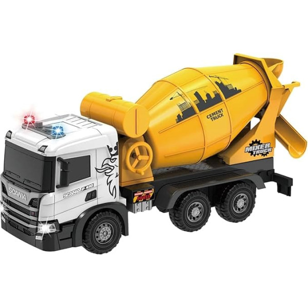 Large 52 cm Concrete Mixer Toy - Scania 1:50 Construction Site Vehicles with Light and Sound, Truck Concrete Mixer Sand Toy for Boys 3 4 5 6 7 8 Years, Yellow