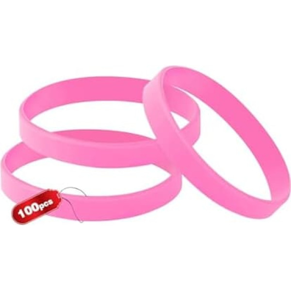 Pack of 100 Silicone Bracelets, Universal Bracelets, Blank Rubber Silicone Bracelets for Boys and Girls, Pink, Silicone