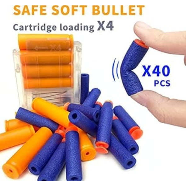 Shell feature: Game-like experience. Product comes with 12 shells. Includes 40 official AGM darts and 2 magazines: Comes with 40 darts to fully load the 4-dart magazine, and more darts for reloads. Shoots darts up to 15 metres: Enjoy long-distance shooting. Precise shooting and manual loading: With the help of the scope, you can hit the target centres. Classic loading style; shoot like a real marksman. Plenty of accessories: The product comes with a spotting scope and a bipod. You can also adjust the removable blaster barrel extension and 4 tactical rails. › See more product details
