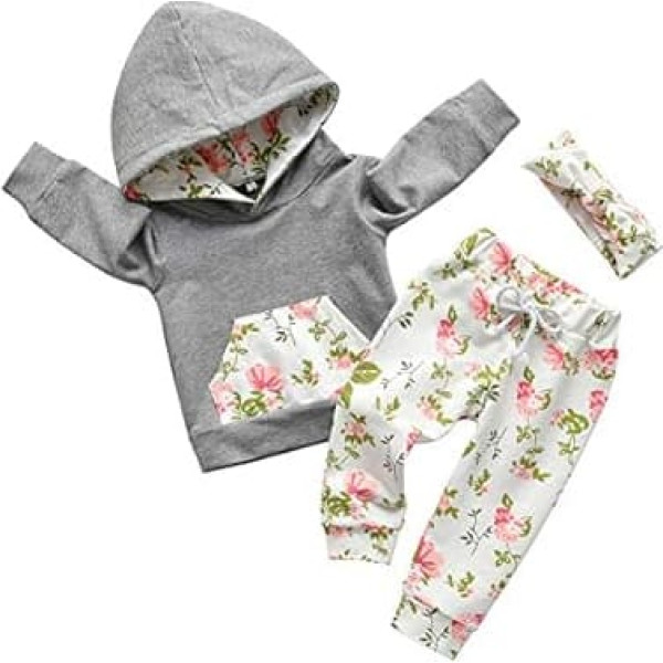 Newborn Baby Clothes Long Sleeve Hoodie Pants with Pocket and Headband