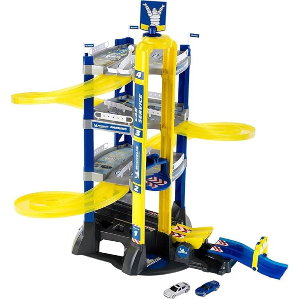 Theo Klein 3400 Michelin Service Car Park with 4 Levels | Parking Garage Including Cars, Rocker and Jumping Jump | Dimensions: 76.5 cm x 62 cm x 75.5 cm | Toy for Children from 3 Years