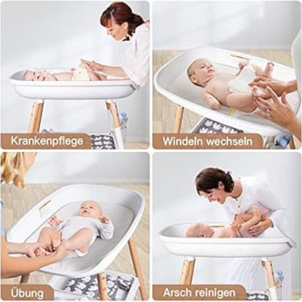 Ergonomic design: the nappy table has a height of 90 cm and has been developed with parents' health in mind. The height of the changing table can be adjusted to 3 different levels to better adapt to the height of mum or dad. When changing or bathing the child, you no longer need to bend over, which protects the spine of the parents. The changing table is suitable for babies aged 0-12 months and has a load capacity of 11 kg. Selected durable materials: changing table made of strictly selected German beech wood, with a trapezoidal body to support stability, the focus point distribution is more stable, equipped with non-slip foot covers, leaves no scratches on the floor and the sturdy frame keeps the table stable and prevents movement to ensure the safety of your baby. Sufficient storage space: there is a waterproof hanging bag on the changing table and a large storage area at the bottom for storing utensils such as nappies, towels, toys etc. Easy to clean waterproof nursing mat: changing table topper is made of high-quality waterproof PU material, easy to clean, simply wipe the surface with a damp cloth. Excellent service: beberoad helps to protect the health of mum and dad, and the baby grows up happy and proud. We are dedicated to providing reliable and safe products, customer satisfaction and service quality are the basic criteria for us. Wenn Sie ein Problem haben, wenden Sie sich bitte an uns Vertrauen Sie uns und kontaktieren Sie uns, Sie sind für uns immer der Erste. › See more product details