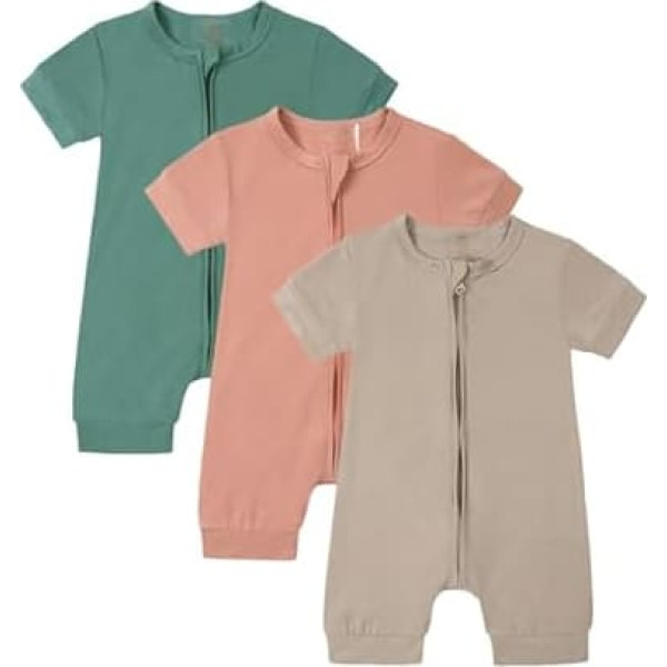 Baby Girls' Romper Short Sleeve Sleepsuit Zip Summer Pyjamas Pack of 3