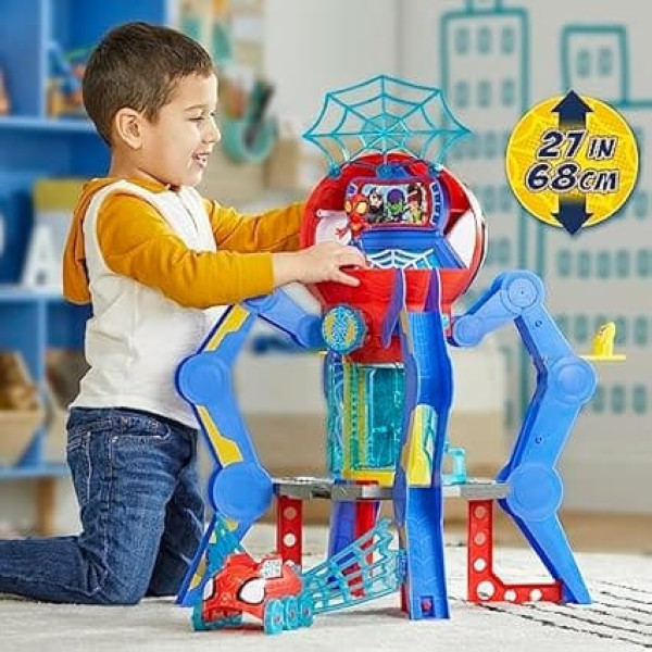 Action packed spidey game set: With the talking web quarter, Spidey and his friends can be celebrated. It's command center, meeting point, heliport, net prison and more. English voice output With vehicle and spidey: simply place Spidey in his web speedster and he can swipe down the ramp in the 38 cm web quarter. The light up web quarter is inspired by the Spidey and his Amazing Friends preschool series 360° gaming experience: bottom, top, back or front – here Spidey fans will find plenty of possibilities: climb up the nets, hear alarm and phrases, whip down the slide to the next mission, put a villain in the net prison and more COMPATIBLE WITH SPIDEY AND HIS AMAZING FRIENDS TOYS: The playset can also be used with other Spidey vehicles and figures such as Ghost Spider and her ghost bike or Miles Morales and his techno racer (sold separately) Great spidey fun for little Spidey fans: Spidey and his Amazing Friends figures, vehicles and playsets are just the right size for little hands and are a great birthday or Christmas gift for preschool children aged 3 and over › See more product details