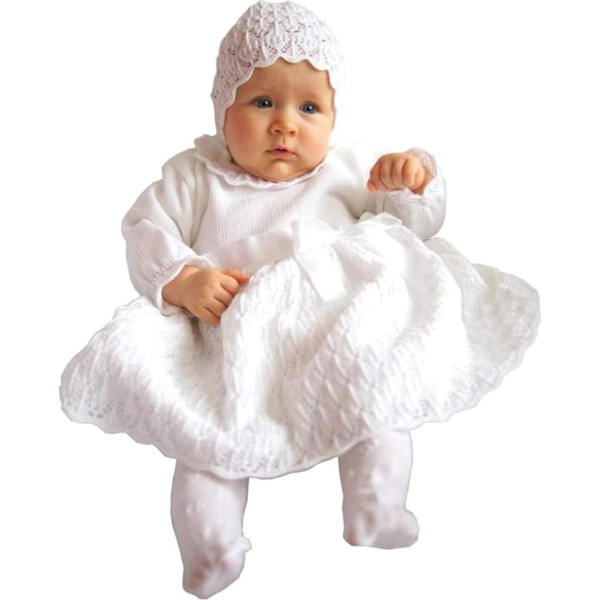 Product description Eco Baby Hat and Christening Dress Set Little girls dress made of fine knit Button closure at the back. Flared cut Satin ribbon with bow on waistband Fine embroidery pattern. Lined skirt. With matching hat. Material: 65% Acrylic 35% Cotton Lining: 100% polyester. Color White; Product description Eco Baby Hat and Christening Dress Set Little girls dress made of fine knit Button closure at the back. Flared cut Satin ribbon with bow on waistband Fine embroidery pattern. Lined skirt. With matching hat. Material: 65% Acrylic 35% Cotton Lining: 100% polyester. Color White; Eco Baby Hat and Christening Dress Set Little girls dress made of fine knit Button closure at the back. Flared cut Satin ribbon with bow on waistband Fine embroidery pattern. Lined skirt. With matching hat. Material: 65% Acrylic 35% Cotton Lining: 100% polyester. Color White