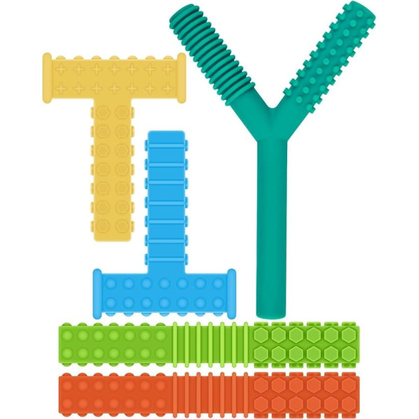 RECOMMENDATION FOR SAFETY THERAPISTS The autism kids chew toys are made of 100% food grade silicone, which is softer, more durable and no tooth marks, so durable even with continuous chewing. Non-toxic, odor free, PVC free and BPA free, safe for children to chew. Available in shapes such as bars, T-shaped and Y shapes. Our chew sticks feature small silicone protrusions that resemble building blocks. They are attractive to children and provide support, making them easier to hold COLORS THAT REDUCE STRESS AND ANXIETY Research shows that bright colors can lead to aggression, hyperactivity, and over-stimulation. Our chew tags come in soothing and soothing colors, making them ideal for restless children, people with autism, ADHD, aggressive chewers, and children with SPD (sensory processing disorder) to relieve stress and redirect focus. Steriliser and dishwasher safe SUITABLE FOR ALL CHEWERS This sensory toy for autism is designed for children with ADHD, anxiety, oral motor skills, biting needs or general teething pain. Helps reduce anxiety and keep calm, effectively stop chewing things they really shouldn't, such as clothes, nails, cheeks and lips EASY TO CLEAN Are you still worried about cleaning? Please try our Chewits and so easy! Simply clean them by hand with mild soapy water or put them in the dishwasher and then hang them to dry for your next playtime. Please wash teether chew toys after each use. GREAT SURPRISE FOR KIDS Not only can be used as a decoration to create a fashionable wearing atmosphere, but also can relieve stress and bring happiness to children. Perfect sensory chew necklace gift for boys and girls for birthday, children's day, Christmas Warm Tips When you receive the sensory chew necklace set, please wash it with warm water before using it. And it must be cleaned or sterilized in boiling water after use. Also needs to be checked and replaced every time it is broken or worn out › See more product details; Product description Product name: sensory chew toy. Package includes: 2 x T-shaped chew toys 1 x Y Shaped Chew Toy 2 x Chew Tubes Color: pink, light green, green, orange Special features: Made from 100% food-safe silicone, BPA free Dishwasher and refrigerator safe. Temperature resistant: -40°C to 200°C. Durable and flexible chew brick toy. Good partner for children. Designed for Autism, ADHD Children: 1. As an oral fidget for sensory seekers who crave oral input and stimulation. 2. Reduces thumb sucking, teething pain, can be used instead of pacifiers. 3. To reduce oral sensitivity, oral defenses and food versions. 4. Improve the strength, coordination and flexibility of the jaw. 5. Practice biting/chewing skills without choking hazard, improve biting and chewing ability. 6. For building mouth tone, strength, mobility, control, coordination and endurance. Note: 1. Make sure the sensory chew toy is clean before use, especially before using it for the first time. 2. Before using the teething toy, please make sure it is intact. 3. Each use of these chew sticks should only be used under adult supervision. 4. Do not let your children use the sensory chewing tools during the night or sleeping. 5. Although these chewing tools are sturdy and durable, no chewing tool is indestructible. Some people (especially people with severe oral needs and aggressive biting/chewing) may damage the tools. How long each tool lasts depends on the amount and intensity of chewing, the individual's oral sensory needs, whether they seek an occupational therapist if necessary, as well as many other variables in their life. Please supervise and replace if necessary if the item shows signs of wear.; Product description Product name: sensory chew toy. Package includes: 2 x T-shaped chew toys 1 x Y Shaped Chew Toy 2 x Chew Tubes Color: pink, light green, green, orange Special features: Made from 100% food-safe silicone, BPA free Dishwasher and refrigerator safe. Temperature resistant: -40°C to 200°C. Durable and flexible chew brick toy. Good partner for children. Designed for Autism, ADHD Children: 1. As an oral fidget for sensory seekers who crave oral input and stimulation. 2. Reduces thumb sucking, teething pain, can be used instead of pacifiers. 3. To reduce oral sensitivity, oral defenses and food versions. 4. Improve the strength, coordination and flexibility of the jaw. 5. Practice biting/chewing skills without choking hazard, improve biting and chewing ability. 6. For building mouth tone, strength, mobility, control, coordination and endurance. Note: 1. Make sure the sensory chew toy is clean before use, especially before using it for the first time. 2. Before using the teething toy, please make sure it is intact. 3. Each use of these chew sticks should only be used under adult supervision. 4. Do not let your children use the sensory chewing tools during the night or sleeping. 5. Although these chewing tools are sturdy and durable, no chewing tool is indestructible. Some people (especially people with severe oral needs and aggressive biting/chewing) may damage the tools. How long each tool lasts depends on the amount and intensity of chewing, the individual's oral sensory needs, whether they seek an occupational therapist if necessary, as well as many other variables in their life. Please supervise and replace if necessary if the item shows signs of wear.; Product name: sensory chew toy. Package includes: 2 x T-shaped chew toys 1 x Y Shaped Chew Toy 2 x Chew Tubes Color: pink, light green, green, orange Special features: Made from 100% food-safe silicone, BPA free Dishwasher and refrigerator safe. Temperature resistant: -40°C to 200°C. Durable and flexible chew brick toy. Good partner for children. Designed for Autism, ADHD Children: 1. As an oral fidget for sensory seekers who crave oral input and stimulation. 2. Reduces thumb sucking, teething pain, can be used instead of pacifiers. 3. To reduce oral sensitivity, oral defenses and food versions. 4. Improve the strength, coordination a