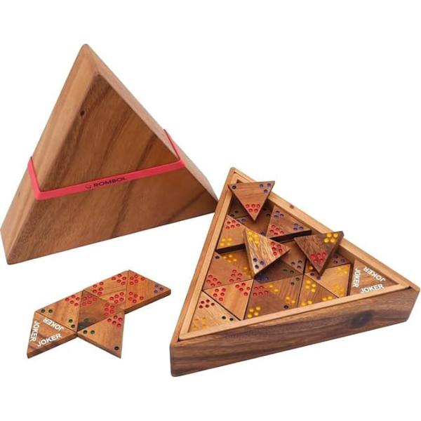 Great wooden game: this classic made of dark Samena wood guarantees great fun for children and adults. Family game: the 56 triangular dominoes inspire not only domino fans. Triomino is ideal for cosy game evenings where logical thinking and tactics are required. Playing game: a perfect gift for birthdays, Easter, Christmas or just because. The closure strap ensures safe transport when travelling. Quality: This board game is made of high-quality, solid Samena wood and therefore ideal for long-term use. Dimensions: 25 cm x 25 cm x 4.5 cm, instructions are included. › See more product details; Product description Product description A lovely set of Tridominoes in a smart, wooden triangular storage box with 2 jokers by Rombol. Tridomino is a challenging variant of the domino game for 2-6 players. The value of the triangular dominoes are displayed by coloured spots, with each number having its own colour. The coloured spots contrast nicely against the wood. The two joker dominoes can be played anywhere. Each domino measures 4.5cm in length and 0.8cm in depth. The 56 dominoes and slip lid box are both made from sustainably sourced Samena wood. From time to time wipe the game with a damp cloth and then rub it thinly with vegetable oil. Contains small parts. Not suitable for people with choking hazard. Product reference: : 007664. Safety Warning Choking Hazard Not a Toy. For Ages 15 and older.; Product description Product description A lovely set of Tridominoes in a smart, wooden triangular storage box with 2 jokers by Rombol. Tridomino is a challenging variant of the domino game for 2-6 players. The value of the triangular dominoes are displayed by coloured spots, with each number having its own colour. The coloured spots contrast nicely against the wood. The two joker dominoes can be played anywhere. Each domino measures 4.5cm in length and 0.8cm in depth. The 56 dominoes and slip lid box are both made from sustainably sourced Samena wood. From time to time wipe the game with a damp cloth and then rub it thinly with vegetable oil. Contains small parts. Not suitable for people with choking hazard. Product reference: : 007664. Safety Warning Choking Hazard Not a Toy. For Ages 15 and older.; Product description A lovely set of Tridominoes in a smart, wooden triangular storage box with 2 jokers by Rombol. Tridomino is a challenging variant of the domino game for 2-6 players. The value of the triangular dominoes are displayed by coloured spots, with each number having its own colour. The coloured spots contrast nicely against the wood. The two joker dominoes can be played anywhere. Each domino measures 4.5cm in length and 0.8cm in depth. The 56 dominoes and slip lid box are both made from sustainably sourced Samena wood. From time to time wipe the game with a damp cloth and then rub it thinly with vegetable oil. Contains small parts. Not suitable for people with choking hazard. Product reference: : 007664. Safety Warning Choking Hazard Not a Toy. For Ages 15 and older.