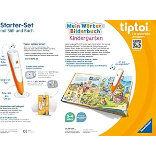 Learning book with many songs and sounds around nursery school. Embedded in easy to follow phrases, children learn new words from everyday life in no time. Games and songs deepen the learnt vocabulary Through loving illustrations and varied audio content, the word picture book offers a meaningful activity that is sure not to get boring quickly. tiptoi makes books and games come alive. When the children tap pictures and texts with the pen, the book plays sounds, speech and music. This makes learning really fun! The words picture book starter kit is recommended for children aged 3 to 4 years. The extensive tiptoi range contains children's books and educational games on many exciting topics. This makes tiptoi products a popular gift for children up to the age of 10 years. Contents: 1 tiptoi pen, 1 word picture book, 1 connection cable, instructions (English language not guaranteed). Included is a fourth generation tiptoi pen with superior audio quality, soft grip pen case and built-in battery. The pen is compatible with all tiptoi products (apart from the Create products). › See more product details