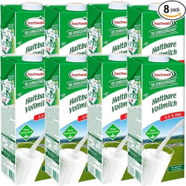 HOHC Durable Milk 3.5% Fat Milk Full Fat Milk Low Fat Durable Milk Full Fat, 1 Litre Each, Pack of 8