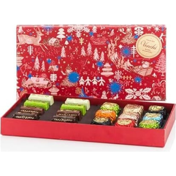 Immerse yourself in our Christmas village and discover the new limited edition Christmas collection from Anna Higgie. Delicious chocoviar cocoa granules 75% with a refined aroma enclose a heart of different flavours, while the chocolate bars take you on a journey of discovery of the Tonda Gentile delle Langhe. Presented in a Christmas themed gift box. Made in Italy according to the \; Product description Product Description Australian artist Anna Higgie has blended red and ice blue hues with the most iconic symbols of the holiday season such as reindeer, gifts and decorated trees into a truly magical journey. Chocoviar, Venchi's most iconic chocolates, an expression of Italian style and creativity, offer seven recipes for every taste: gianduia with a crispy heart of IGP piedmont hazelnut, 75% intense, pistachio with toffee granules and nibs, crème brulée with a creamy caramel heart, cocoa cream filled with Strestrecreme, Stracciatella with cream and orange with blood orange filling. For experts of brisk consistencies, the croky chocolate bars: made of milk chocolate and extra bitters with double whole IGP piedmont hazelnut, with pistachio and with whole pistachios and salted white chocolate with almonds, pistachios and hazelnuts. Ingredients Assorted chocolates. Gluten-free ingredients: sugar, cocoa butter, cocoa mass, whole milk powder, cocoa powder, Piedmont hazelnut, pizza paste, Piedmont hazelnut paste, roasted pizza, preparation based on blood orange from Sicily (blood oranges of Sicily -60%, sugar sugar cctose, concentrated lemon juice, orange oil), spread cream with hazelnut and cocoa (Piedmont hazelnut paste 33.0%, sugar, vegetable oils and fats (sunflower oil, cocoa butter, olive oil), lean cocoa powder 10.0%, skimmed milk powder, cocoa butter, emulsifier: soy CITHIN, walking minced vanilla berries), chopped roasted cocoa nibs, aromatic caramel (sugar, glucose syrup, butter (from milk), cream (from milk), water), raw sugar, whey powder (from milk), concentrated milk butter, vegetable oils and fats (sunflower oil, cocoa butter, olive oil), chopped salted manmanmanmanmanDELN (almonds - 98.5%, salt), chopped salted Piedmont hazelnut (Piedmont hazelnut - 98.7%, salt), glucose syrup, caramel (sugar, water), emulsifier: soy lecithin, chopped salted pizzas (pizzas - 98.7%). , 7%, salt), Cream powder (from milk), vegetable fibres (chicory root), skimmed milk powder, anhydrous milk fat, sugared condensed whole milk - 9% fat (milk, sugar), water, salt, natural vanilla flavour, chopped vanilla berries, acidifier: citric acid. Contains/may contain traces of: milk, soybeans, peel Directions The best way to store Venchi chocolate is to store it in the packaging in a cool, dry place, away from heat and light sources, at a temperature between 16 and 20 degrees. Manufacturer Contact Information Via Venchi, 1 - 12040 - Castelletto Stura (CN) - Italy See more; Product description Product Description Australian artist Anna Higgie has blended red and ice blue hues with the most iconic symbols of the holiday season such as reindeer, gifts and decorated trees into a truly magical journey. Chocoviar, Venchi's most iconic chocolates, an expression of Italian style and creativity, offer seven recipes for every taste: gianduia with a crispy heart of IGP piedmont hazelnut, 75% intense, pistachio with toffee granules and nibs, crème brulée with a creamy caramel heart, cocoa cream filled with Strestrecreme, Stracciatella with cream and orange with blood orange filling. For experts of brisk consistencies, the croky chocolate bars: made of milk chocolate and extra bitters with double whole IGP piedmont hazelnut, with pistachio and with whole pistachios and salted white chocolate with almonds, pistachios and hazelnuts. Ingredients Assorted chocolates. Gluten-free ingredients: sugar, cocoa butter, cocoa mass, whole milk powder, cocoa powder, Piedmont hazelnut, pizza paste, Piedmont hazelnut paste, roasted pizza, preparation based on blood orange from Sicily (blood oranges of Sicily -60%, sugar sugar cctose, concentrated lemon juice, orange oil), spread cream with hazelnut and cocoa (Piedmont hazelnut paste 33.0%, sugar, vegetable oils and fats (sunflower oil, cocoa butter, olive oil), lean cocoa powder 10.0%, skimmed milk powder, cocoa butter, emulsifier: soy CITHIN, walking minced vanilla berries), chopped roasted cocoa nibs, aromatic caramel (sugar, glucose syrup, butter (from milk), cream (from milk), water), raw sugar, whey powder (from milk), concentrated milk butter, vegetable oils and fats (sunflower oil, cocoa butter, olive oil), chopped salted manmanmanmanmanDELN (almonds - 98.5%, salt), chopped salted Piedmont hazelnut (Piedmont hazelnut - 98.7%, salt), glucose syrup, caramel (sugar, water), emulsifier: soy lecithin, chopped salted pizzas (pizzas - 98.7%). , 7%, salt), Cream powder (from milk), vegetable fibres (chicory root), skimmed milk powder, anhydrous milk fat, sugared condensed whole milk - 9% fat (milk, sugar), water, salt, natural vanilla flavour, chopped vanilla berries, acidifier: citric acid. Contains/may contain traces of: milk, soybeans, peel Directions The best way to store Venchi chocolate is to store it in the packaging in a cool, dry place, away from heat and light sources, at a temperature between 16 and 20 degrees. Manufacturer Contact Information Via Venchi, 1 - 12040 - Castelletto Stura (CN) - Italy See more; Product Description Australian artist Anna Higgie has blended red and ice blue hues with the most iconic symbols of the holiday season such as reindeer, gifts and decorated trees into a truly magical journey. Chocoviar, Venchi's most iconic chocolates, an expression of Italian style and creativity, offer seven recipes for every taste: gianduia with a crispy heart of IGP piedmont hazelnut, 75% intense, pistachio with toffee granules and nibs, crème brulée with a creamy caramel heart, cocoa cream filled with Strestrecreme, Stracciatella with cream and orange with blood or