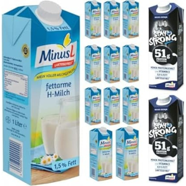 With Pufai Grocery, Minus L H Milk 1.5% Fat Lactose Free 1000 ml x 12 Pieces + L Stay Strong H Milk High Protein Content 1000 Mililitres x 2 Pieces