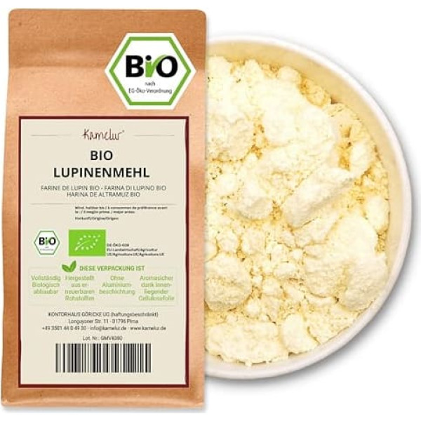 PREMIUM ORGANIC QUALITY Our lupine flour is made from carefully selected, organically grown lupins. VERSATILE IN THE KITCHEN This lupine flour is extremely versatile and can be used in a wide range of recipes, from fine baked goods to savory dishes. Use: you can easily replace conventional flour with the lupine flour. With 60 g lupine flour, you can replace 100 g wheat flour. Origin: our lupins are manufactured under ecological regulations in the Czech Republic › See more product details