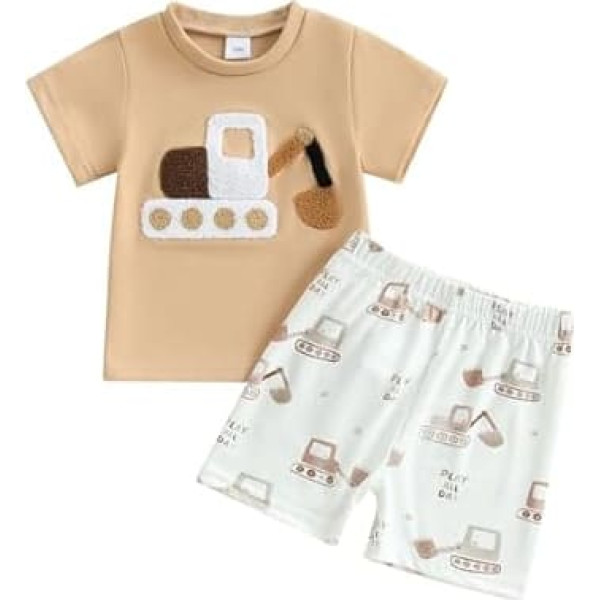 Geagodelia Sommer-Outfits für Kleinkinder, Babys, Jungen, kurzärmelig, Rundhalsausschnitt, Auto/Traktor-Stickerei, T-Shirt, Sweatshirt, Oberteil mit elastischem Auto-Druck, Shorts, 2-teiliges Set für
