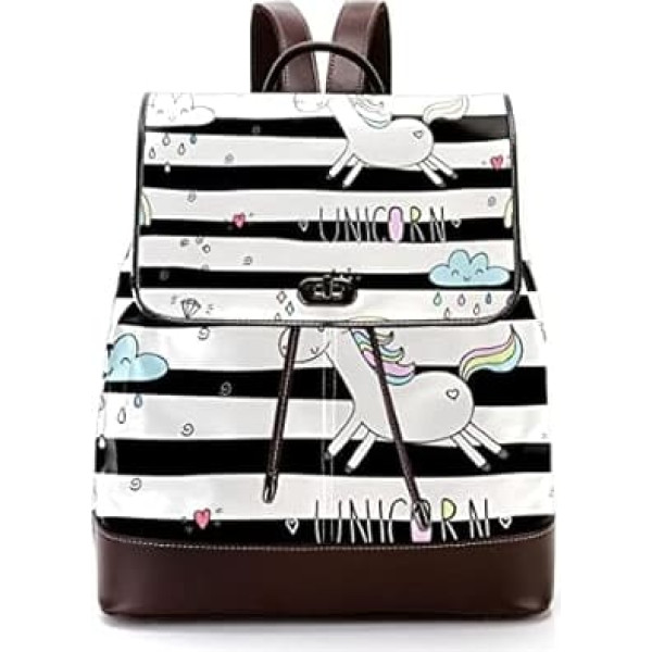 Cartoon Unicorn Rainbow Cloud Rain Black Stripes Personalised School Bags Book Bags for Teenagers, Multicoloured, 27 x 12.3 x 32 cm, Backpack Backpacks, multicoloured