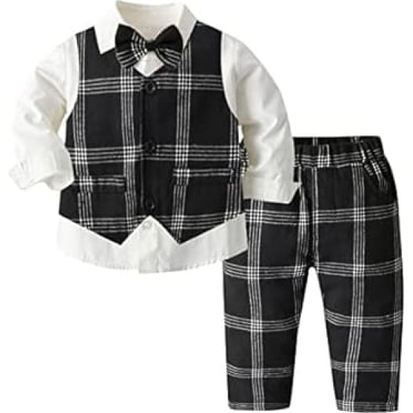 Fashion Newborn Clothing for Toddler Boys Long Sleeve T-Shirt Tops Plaid Vest Coat Pants Kids Gentleman Outfits, a