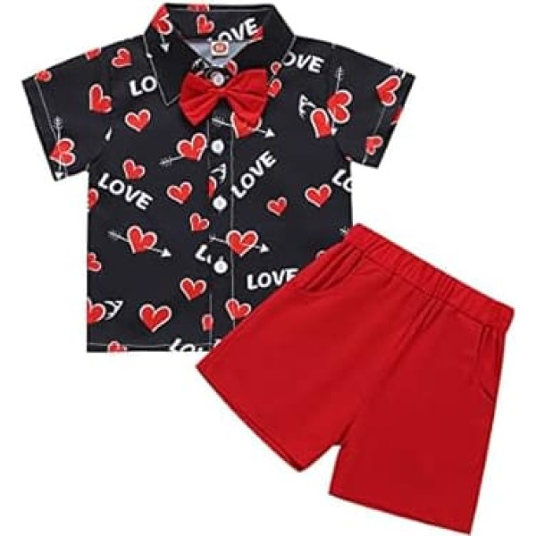 Fashion Kids Clothing for Toddler Boys Short Sleeve Tops With Tie Shirt Shorts 2 Pieces Outfits Clothes Set For Babies Clothes Valentine's Day