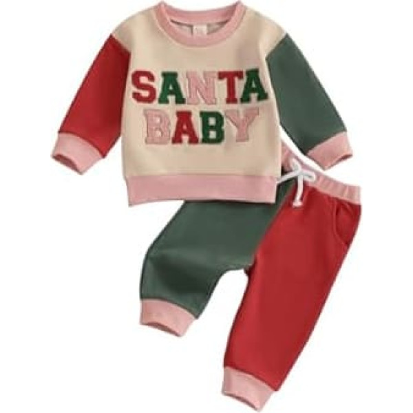 Baby Boys Christmas Outfit Santa Baby Embroidery Colour Block Sports Suit Long Sleeve Embroidered Letters Sweatshirt + Elastic Trousers 2-Piece Santa Baby Clothing Set