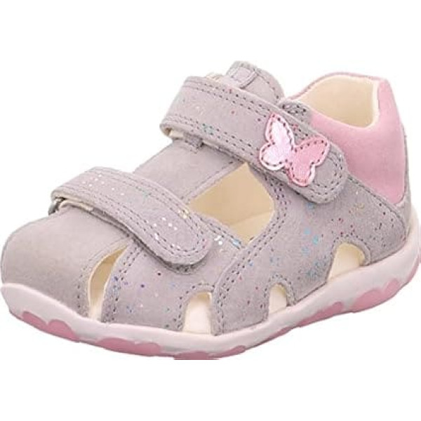 Product description Fanni by Superfit is a toe closed sandal for babies and toddlers, made from a high-quality and durable leather/textile combination. With the soft, leather-covered insole and the supple leather lining, which ensure optimal breathability and a comfortable fit, children are comfortable at rising temperatures and always well ventilated on the go. Thanks to the practical Velcro fasteners, the model can be quickly and easily put on and taken off, and the sandal can be individually adjusted to the child's foot. The non-slip outsole, which is profiled with cute hearts, ensures stability and safety during the first steps. Fanni is the ideal companion through the summer for all beginners and is offered in the WMS width M IV.; Product description Fanni by Superfit is a toe closed sandal for babies and toddlers, made from a high-quality and durable leather/textile combination. With the soft, leather-covered insole and the supple leather lining, which ensure optimal breathability and a comfortable fit, children are comfortable at rising temperatures and always well ventilated on the go. Thanks to the practical Velcro fasteners, the model can be quickly and easily put on and taken off, and the sandal can be individually adjusted to the child's foot. The non-slip outsole, which is profiled with cute hearts, ensures stability and safety during the first steps. Fanni is the ideal companion through the summer for all beginners and is offered in the WMS width M IV.; Fanni by Superfit is a toe closed sandal for babies and toddlers, made from a high-quality and durable leather/textile combination. With the soft, leather-covered insole and the supple leather lining, which ensure optimal breathability and a comfortable fit, children are comfortable at rising temperatures and always well ventilated on the go. Thanks to the practical Velcro fasteners, the model can be quickly and easily put on and taken off, and the sandal can be individually adjusted to the child's foot. The non-slip outsole, which is profiled with cute hearts, ensures stability and safety during the first steps. Fanni is the ideal companion through the summer for all beginners and is offered in the WMS width M IV.