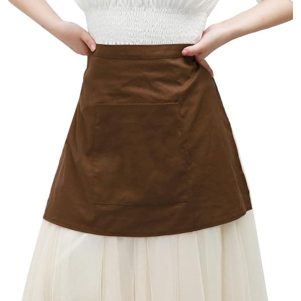 KUOIN Medieval Renaissance Apron with Pocket, Linen Vintage Half Waist Waiter Cosplay Aprons