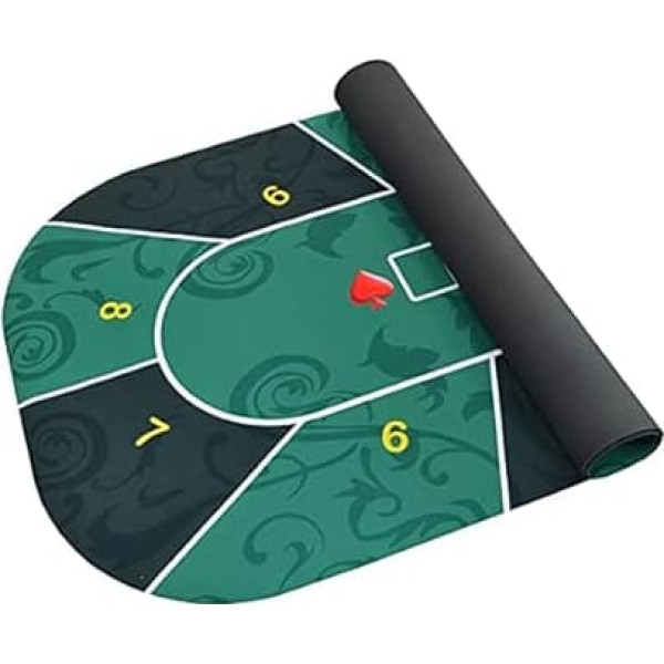 Die Pokertischmatte lässt sich einfach zusammenrollen und platzsparend über dem Pokertisch verstauen. So können Sie die Spielmatte mit der mitgelieferten Tragetasche ganz einfach mitnehmen, wenn Sie draußen eine Party feiern oder campen gehen. Die Pokertischmatte ist 70 Zoll lang, 35 Zoll breit und 0,1 Zoll dick. Die Pokermatte mit Gummiunterseite kann fest auf dem Schreibtisch haften und bietet Stabilität, wenn der entscheidende Moment kommt. Und die Fischmusterstruktur auf der Unterseite erhöht die Reibung und beeinträchtigt nicht das Kartengeben beim Spielen. Rollen Sie sie einfach auf einem gewöhnlichen Küchen- oder Esstisch aus. Diese Pokermatte kann jeden Tisch in einen professionellen Pokerspieltisch verwandeln. Großartig zum Pokern und für Kartenspiele. ULTIMATIVE GESCHENKIDEE: Das Casino-Pokerchip-Set ist ein klassisches Tischspiel, das Menschen jeden Alters wirklich lieben. Die Spielchips sind eine großartige Geschenkidee für Kinder und Erwachsene zum Geburtstag, zu Weihnachten und anderen Feiertagen. › See more product details; Product description Inspired by the classic Art Deco style, printing not only keeps order thanks to the numbered fields, but also adds a touch of class to your card game.The texas holdem Mat is mainly used playing poker and can also be used as Card Mat, Craps Mat, Blackjack Mat, Roulette Mat.【Specification】Texas Hold'em Poker Table Cloth ( with single-shoulder bag ) :RubberSize:about 180 ( Thickness:about 2mm )Weight:about 2.35kgColor: greenSize of single-shoulder bag is about 130x9cm【Note】1.The product packaging is very tight, please open the packaging carefully to avoid scratching the product.2.If you have any problem with the product, please contact us in time and we will reply to you within 24 hours.; Product description Inspired by the classic Art Deco style, printing not only keeps order thanks to the numbered fields, but also adds a touch of class to your card game.The texas holdem Mat is mainly used playing poker and can also be used as Card Mat, Craps Mat, Blackjack Mat, Roulette Mat.【Specification】Texas Hold'em Poker Table Cloth ( with single-shoulder bag ) :RubberSize:about 180 ( Thickness:about 2mm )Weight:about 2.35kgColor: greenSize of single-shoulder bag is about 130x9cm【Note】1.The product packaging is very tight, please open the packaging carefully to avoid scratching the product.2.If you have any problem with the product, please contact us in time and we will reply to you within 24 hours.; Inspired by the classic Art Deco style, printing not only keeps order thanks to the numbered fields, but also adds a touch of class to your card game.The texas holdem Mat is mainly used playing poker and can also be used as Card Mat, Craps Mat, Blackjack Mat, Roulette Mat.【Specification】Texas Hold'em Poker Table Cloth ( with single-shoulder bag ) :RubberSize:about 180 ( Thickness:about 2mm )Weight:about 2.35kgColor: greenSize of single-shoulder bag is about 130x9cm【Note】1.The product packaging is very tight, please open the packaging carefully to avoid scratching the product.2.If you have any problem with the product, please contact us in time and we will reply to you within 24 hours.