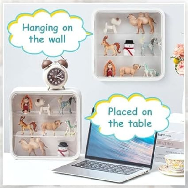 Enough quantity for your needs: the package includes 2 pieces display cases for figurines, colored in white, allowing you to categorize, diversify and store your collection; Double the space for your characters in a stylish way IDEAL MATERIAL & LIGHTWEIGHT CONSTRUCTION Find the ideal home for your figurines in the form of this clear display box made of sturdy plastic; Lightweight yet strong, it stays organized and tidy whether it's wall mounted or sits nicely on a table Appropriate size for comfort: dimensions: approx. 30 x 30 x 8 cm, with 3 tiers, these display cases for collectibles provide ample space to accommodate your valuable figures without taking up too much space, a proper blend of utility and aesthetics Simple and practical: the simple use method makes the mini figure display case convenient; No drilling or complex assembly required, it can be directly fixed on the wall or placed on the table, also ensures its stability, with clear design and magnetic doors, convenient for you to open and close, keeping your toy from dust and dirt, providing quick checks and easy display SUITABLE FOR MANY OCCASIONS Whether you want to display your action figure collection, miniatures or toys, this clear display case for figures is an ideal choice, can be placed in your living room, study, office or even in stores or exhibitions › See more product details; Product description Features: With enough quantity, high quality material, suitable size, easy handling method and novel design, the clear plastic display case is a thoughtful and practical gift for collectors, hobbyists, friends or family members who want to display their precious collectibles elegantly and safely. Add a touch of elegance to your display with the white color of this clear plastic box. The classic white background of your characters enhances their charm and makes them stand out in most environments. Specifications: Material: Plastic Colour: white. Size: approx. 30 x 30 x 8 cm. Package includes: 2 x display case for figures. Notes: Manual measurement, please allow slight errors on size. The color may exist slight difference due to different displays.; Product description Features: With enough quantity, high quality material, suitable size, easy handling method and novel design, the clear plastic display case is a thoughtful and practical gift for collectors, hobbyists, friends or family members who want to display their precious collectibles elegantly and safely. Add a touch of elegance to your display with the white color of this clear plastic box. The classic white background of your characters enhances their charm and makes them stand out in most environments. Specifications: Material: Plastic Colour: white. Size: approx. 30 x 30 x 8 cm. Package includes: 2 x display case for figures. Notes: Manual measurement, please allow slight errors on size. The color may exist slight difference due to different displays.; Features: With enough quantity, high quality material, suitable size, easy handling method and novel design, the clear plastic display case is a thoughtful and practical gift for collectors, hobbyists, friends or family members who want to display their precious collectibles elegantly and safely. Add a touch of elegance to your display with the white color of this clear plastic box. The classic white background of your characters enhances their charm and makes them stand out in most environments. Specifications: Material: Plastic Colour: white. Size: approx. 30 x 30 x 8 cm. Package includes: 2 x display case for figures. Notes: Manual measurement, please allow slight errors on size. The color may exist slight difference due to different displays.