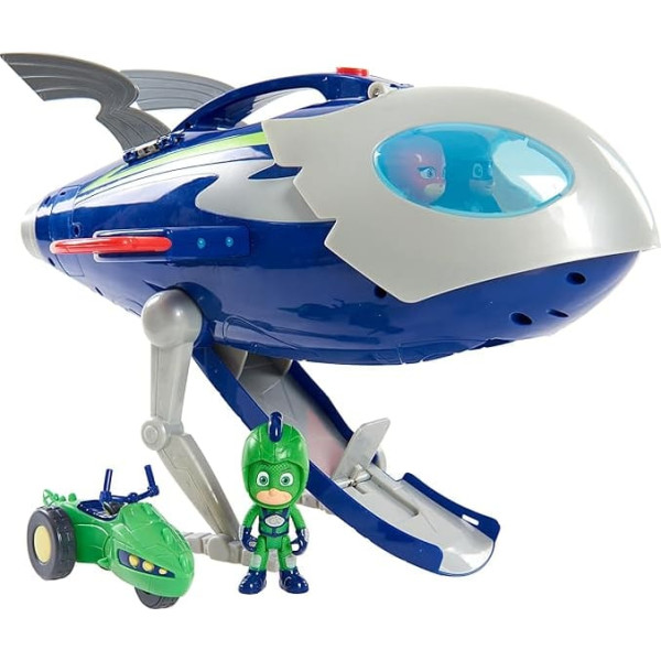 Gekko comes dressed in an exclusive Super Moon Space Suit. Gekko has movable arms and legs and can really ride his Space Rover. Press the button to release the ramp of the HQ Rocket and Gekko will launch from the HQ rocket on his Space Rover Press the button for lights and realistic rocket ship sounds The cockpit fits in three PJ Masks 7.5 cm tall figures. › See more product details