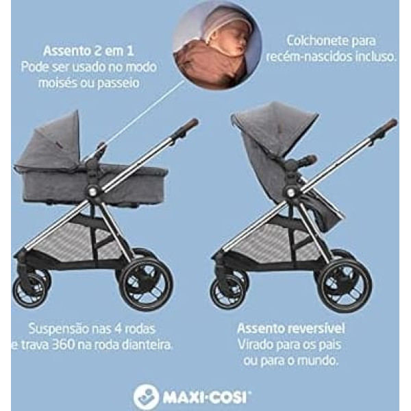 MAXI-COSI Pushchair — suitable for children from birth to 22 kg (approx. 4 years). PREMIUM DESIGN — A special edition pushchair that is part of our Luxe collection and features high quality and stylish finishes and fabrics. 2-in-1 seat unit: With integrated carrycot, Zelia Luxe is the 2-in-1 pushchair that offers everything you and your baby need. Easy to fold - The fast, compact one-handed folding allows you to have the other hand free for your baby or a coffee to take with you. HUGE SHOPPING BASKET — A stylish, giant shopping basket that holds up to 10 kg of essentials for the whole family. Compatible with Maxi-Cosi car seats for babies – Attach a Maxi-Cosi The CabrioFix i-Size, Tinca, Marble, Coral, Pebble Plus, Rock, CabrioFix or Citi baby seat form the perfect travel system for pushchairs. Adapters for baby car seats are included. › See more product details; Product description The Maxi-Cosi Zelia 3 Luxe is a luxurious 2-in-1 stroller with a pram body that transforms into a comfortable seat so you don't have to change anything. The Zelia 3 Luxe is a special edition stroller and is part of our Luxe collection with high quality and stylish workmanship and fabrics. The 2-in-1 pushchair is super easy to manoeuvre around the city and folds quickly and easily with a one-handed fold. The Zelia 3 Luxe features a simple one-handed reclining seat that allows you to quickly move the seat to a more comfortable resting position. The XXL shopping basket makes your life easier when you stock up for city adventures. In the spacious pram body, a real mattress is integrated into the design to provide extra comfort. If your baby is slightly larger and uses the reversible seat, you can easily recline the wide, padded seat back into a flat lying position, so they can enjoy a cozy, comfortable afternoon nap while strolling around town. And when it's sunny outside, simply extend the protective sun canopy to protect your little one. Easy to maneuver, its shock-absorbing four-wheel suspension and puncture proof wheels can tackle any city road or step, while providing a smooth ride for the baby. The Maxi-Cosi CabrioFix i-Size, Marble, Coral, Pebble Pro, Pebble 360, Pebble Plus, baby carriers (not included) can be attached with the travel system, giving you next-level luxury for stylish travel.; Product description The Maxi-Cosi Zelia 3 Luxe is a luxurious 2-in-1 stroller with a pram body that transforms into a comfortable seat so you don't have to change anything. The Zelia 3 Luxe is a special edition stroller and is part of our Luxe collection with high quality and stylish workmanship and fabrics. The 2-in-1 pushchair is super easy to manoeuvre around the city and folds quickly and easily with a one-handed fold. The Zelia 3 Luxe features a simple one-handed reclining seat that allows you to quickly move the seat to a more comfortable resting position. The XXL shopping basket makes your life easier when you stock up for city adventures. In the spacious pram body, a real mattress is integrated into the design to provide extra comfort. If your baby is slightly larger and uses the reversible seat, you can easily recline the wide, padded seat back into a flat lying position, so they can enjoy a cozy, comfortable afternoon nap while strolling around town. And when it's sunny outside, simply extend the protective sun canopy to protect your little one. Easy to maneuver, its shock-absorbing four-wheel suspension and puncture proof wheels can tackle any city road or step, while providing a smooth ride for the baby. The Maxi-Cosi CabrioFix i-Size, Marble, Coral, Pebble Pro, Pebble 360, Pebble Plus, baby carriers (not included) can be attached with the travel system, giving you next-level luxury for stylish travel.; The Maxi-Cosi Zelia 3 Luxe is a luxurious 2-in-1 stroller with a pram body that transforms into a comfortable seat so you don't have to change anything. The Zelia 3 Luxe is a special edition stroller and is part of our Luxe collection with high quality and stylish workmanship and fabrics. The 2-in-1 pushchair is super easy to manoeuvre around the city and folds quickly and easily with a one-handed fold. The Zelia 3 Luxe features a simple one-handed reclining seat that allows you to quickly move the seat to a more comfortable resting position. The XXL shopping basket makes your life easier when you stock up for city adventures. In the spacious pram body, a real mattress is integrated into the design to provide extra comfort. If your baby is slightly larger and uses the reversible seat, you can easily recline the wide, padded seat back into a flat lying position, so they can enjoy a cozy, comfortable afternoon nap while strolling around town. And when it's sunny outside, simply extend the protective sun canopy to protect your little one. Easy to maneuver, its shock-absorbing four-wheel suspension and puncture proof wheels can tackle any city road or step, while providing a smooth ride for the baby. The Maxi-Cosi CabrioFix i-Size, Marble, Coral, Pebble Pro, Pebble 360, Pebble Plus, baby carriers (not included) can be attached with the travel system, giving you next-level luxury for stylish travel.