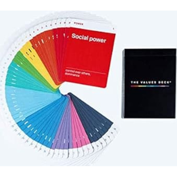 A card sorting game that helps you explore your personal values Based on the Theory of Basic Human Values, developed by social psychologist Shalom H. Schwartz 60 poker sized cards, with 57 individual values from 10 value categories Front card: individual values arranged by colour coded categories Back card: self-discovery questions with 3 step approach: awareness, affirm, apply › See more product details; Product description This wonderful card sorting game offers you the opportunity to fully explore your core values. Based on the work of social psychologist Shalom H. Schwartz, who pioneered the theory of fundamental human values. With over 200 studies in 80 countries, the Theory of Basic Human Values is one of the most studied value frameworks in the world. The real beauty of this framework is that it represents a common language of understanding how we think about and express our values. It goes to the root of what motivates you. The deck is designed to be simple and functional, making it an insightful and powerful learning resource. On the front you have 57 cards that represent individual values and are colour-coded by value category. On the back there are a number of questions to help you explore your values even further. The deck consists of traditional poker sized cards, making them easy to handle in the hands and are great for sorting during a table activity. You can also register your deck online and get free access to additional card sorting techniques, group activities, worksheets and more. This deck is not only ideal for personal use, but also for life, leadership, career and wellness coaches, corporate intermediaries, HR professionals, career service professionals, or anyone performing value-based development with their clients.; Product description This wonderful card sorting game offers you the opportunity to fully explore your core values. Based on the work of social psychologist Shalom H. Schwartz, who pioneered the theory of fundamental human values. With over 200 studies in 80 countries, the Theory of Basic Human Values is one of the most studied value frameworks in the world. The real beauty of this framework is that it represents a common language of understanding how we think about and express our values. It goes to the root of what motivates you. The deck is designed to be simple and functional, making it an insightful and powerful learning resource. On the front you have 57 cards that represent individual values and are colour-coded by value category. On the back there are a number of questions to help you explore your values even further. The deck consists of traditional poker sized cards, making them easy to handle in the hands and are great for sorting during a table activity. You can also register your deck online and get free access to additional card sorting techniques, group activities, worksheets and more. This deck is not only ideal for personal use, but also for life, leadership, career and wellness coaches, corporate intermediaries, HR professionals, career service professionals, or anyone performing value-based development with their clients.; This wonderful card sorting game offers you the opportunity to fully explore your core values. Based on the work of social psychologist Shalom H. Schwartz, who pioneered the theory of fundamental human values. With over 200 studies in 80 countries, the Theory of Basic Human Values is one of the most studied value frameworks in the world. The real beauty of this framework is that it represents a common language of understanding how we think about and express our values. It goes to the root of what motivates you. The deck is designed to be simple and functional, making it an insightful and powerful learning resource. On the front you have 57 cards that represent individual values and are colour-coded by value category. On the back there are a number of questions to help you explore your values even further. The deck consists of traditional poker sized cards, making them easy to handle in the hands and are great for sorting during a table activity. You can also register your deck online and get free access to additional card sorting techniques, group activities, worksheets and more. This deck is not only ideal for personal use, but also for life, leadership, career and wellness coaches, corporate intermediaries, HR professionals, career service professionals, or anyone performing value-based development with their clients.