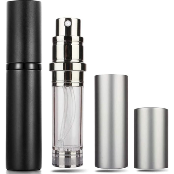 Travelofo Mini Perfume Atomizer Spray Bottle 5ml Small Perfume Dispenser Portable Refillable for Men and Women (Black+Silver)
