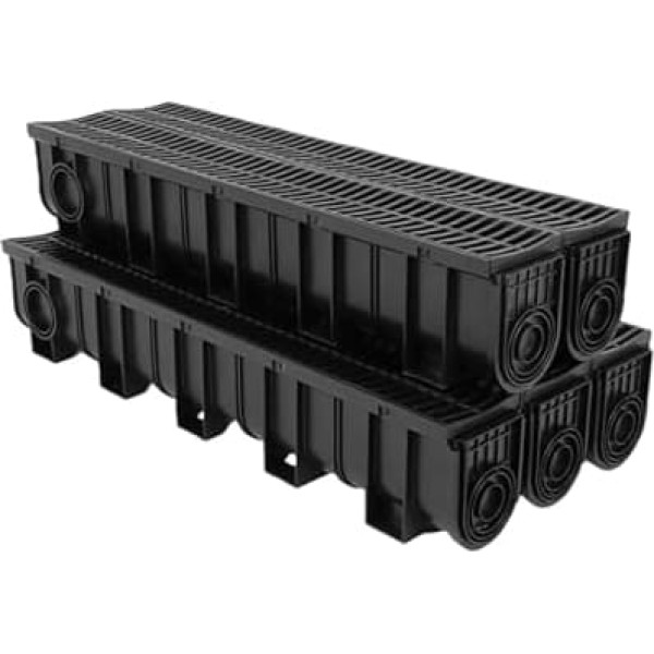 Trench Drain System Sewer Drain with Plastic Grate 15 x 19 cm HDPE Drainage Trench 5 x 39 cm with 5 End Caps Black Plastic Trench Drain Garden Driveway 5 Pack