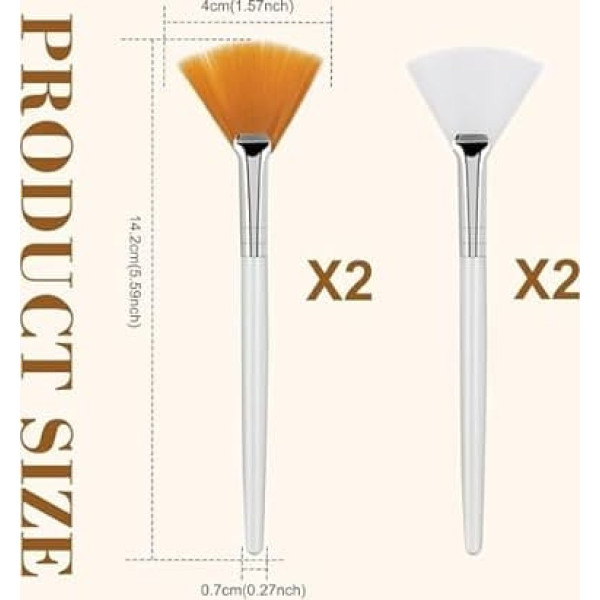 【Ideale Größe für Präzision】Unsere Gesichtsbürste verfügt über eine Fächerform, die eine gleichmäßige Puderverteilung auf Ihrem Gesicht gewährleistet. Die Borsten sind sicher an einem glatten, haltbaren Acrylgriff befestigt, der ca. 10,9 cm misst. Diese Größe macht die Gesichtsfächerbürste bequem und einfach zu halten, perfekt für professionelle Kosmetiker und Heimanwender. Hochwertiges, weiches Material: Diese Fächerpinsel für Kosmetiker sind aus hochwertigen weichen Fasern hergestellt, geeignet für alle Hauttypen, einschließlich empfindlicher Haut. Die anti-empfindlichen Borsten sind sanft und bequem, um Ihrer Haut keinen Schaden zuzufügen. Diese Maskenbürsten für Gesichtsbehandlungen sind auch leicht mit warmem Wasser zu reinigen, was sie zu einer zuverlässigen Ergänzung Ihrer Hautpflegeroutine macht. 【Vielseitige Verwendung】Unsere Gesichtsbürsten Kosmetikerbedarf sind waschbar und verfügen über Griffe, die nach Gebrauch leicht zu reinigen sind. Diese Pinsel sind vielseitig einsetzbar, perfekt zum Auftragen von Rouge, Puder und anderen Kosmetika. Egal, ob Sie einen Gesichtsmaskenpinselapplikator oder ein allgemeines Gesichtsmasken-Applikatorwerkzeug benötigen, diese Bürsten sind der Aufgabe gewachsen. Tragbares und praktisches Design: Diese Gesichtsmaskenbürsten haben Holzgriffe und weiche Faserborsten, wodurch sie leicht und einfach zu tragen sind. Jede Bürste ist sorgfältig verarbeitet, um sie sauber und frei von Schmutz und Öl zu halten. Diese professionellen Werkzeuge für Kosmetiker sind perfekt für unterwegs, passen leicht in Ihre Tasche oder Kosmetiktasche. 【Umfassendes Set】 Sie erhalten 4 Stück Gesichtswerkzeuge für Kosmetiker, die reichlich Menge für verschiedene Anwendungen bieten. Diese Bürsten sind perfekt für erfahrene Profis und Heimanwender und gewährleisten eine langfristige Nutzung. Sie sind auch ein aufmerksames Geschenk für Freunde und Familie, die hochwertige Hautpflegewerkzeuge schätzen. › See more product details; Product description Kategorie: fächerförmige Maskenbürste Farbe: weiß gelb Material: Nylon Funktion: gleichmäßige Anwendung Verabschieden Sie sich von den Problemen, die durch ungleichmäßige Anwendung verursacht werden. Weiche Borsten: sanfte Pflege für empfindliche Haut. Leicht und tragbar: Hautpflege jederzeit und überall. Produktgröße: 10,9 x 1 x 0,7 cm; Product description Kategorie: fächerförmige Maskenbürste Farbe: weiß gelb Material: Nylon Funktion: gleichmäßige Anwendung Verabschieden Sie sich von den Problemen, die durch ungleichmäßige Anwendung verursacht werden. Weiche Borsten: sanfte Pflege für empfindliche Haut. Leicht und tragbar: Hautpflege jederzeit und überall. Produktgröße: 10,9 x 1 x 0,7 cm; Kategorie: fächerförmige Maskenbürste Farbe: weiß gelb Material: Nylon Funktion: gleichmäßige Anwendung Verabschieden Sie sich von den Problemen, die durch ungleichmäßige Anwendung verursacht werden. Weiche Borsten: sanfte Pflege für empfindliche Haut. Leicht und tragbar: Hautpflege jederzeit und überall. Produktgröße: 10,9 x 1 x 0,7 cm