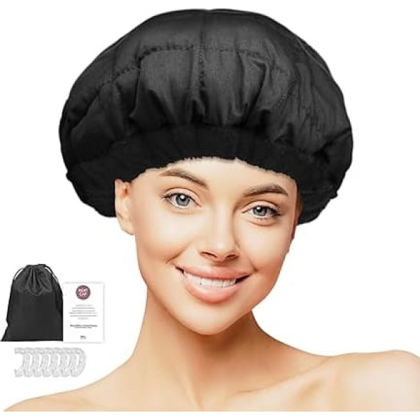 MQUPIN Deep Rinse Heat Cap Microwave Safe Hair Care with 10 Disposable Shower Caps (Black)