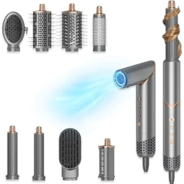 VERSATILE STYLING This 8 in 1 hair dryer brush set provides multiple attachments for curling, waving, straightening and volumizing your hair. ION TECHNOLOGY Equipped with negative ion technology, this hot air styler helps reduce frizz and static for smooth, shiny results. FOLDABLE DESIGN Thanks to the compact and foldable design, this hair styling tool is easy to store and carry. Multiple Heat Settings Adjust the temperature to suit your hair type and style with multiple heat settings. Practical accessories: the set includes various attachments such as a concentrator nozzle, diffuser and comb attachments for versatile styling options. › See more product details