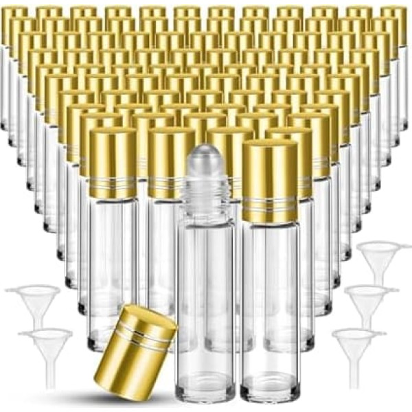 Package Content You will receive 96 pieces 10ml essential oil roller bottles, 5 funnels in the package, sufficient in quantity and complete in combination to meet your use and replacement needs. You can also share some with your family members, friends or neighbors Quality material: the 10ml roller bottles for essential oils are made of thick clear glass, safe, corrosion resistant and delicate, good airtight seal prevents rapid evaporation and retains its fragrance very well COMPLETE ACCESSORIES The clear roller bottles for oils can be easily disassembled and refilled. This accessory can help you create your own beauty products such as perfume. The small dimension makes clear roller bottles easy to carry, very suitable for travel Comfortable Design The essential oil roll on bottles have a capacity of 10ml, conveniently fit in your purse, first choice for travel. You can also use them for diluted essential oils, perfume, blends and other liquids to meet your various needs and provide you with much convenience LEAK PROOF & REFILLABLE: with nice dense roller tip and screw thread bottle neck. This glass roller bottle for essential oils will not leak or spill when you put it in your cosmetic bag or bag. The stainless steel roller balls roll smoothly and evenly on your skin and glide easily without sticking. You can refill the glass roll bottle at any time › See more product details; Product description Special features: Wide range of uses: The empty refillable roll on bottles with clear surface provide good UV protection, you can use them to store essential oils, perfumes, lip gloss, cosmetic eye cream, lipsticks and more beauty products for face and body care in daily life or travel. Gifts for others: The package contains a total of 96 pieces essential oil roll containers. You can share some with your mother, sister, grandmother, daughter or friends, or prepare them as a gift, enough quantity can support using for a long time. People who receive the gifts can enjoy the convenience of carrying and storage, delicate, clear design can bring them a pleasant mood when using. Product Features: Material for clear roll bottles: mainly glass. Roller ball material: stainless steel. Essential oil color: mainly transparent. Roll On Bottle Size: Approx. 10ml capacity Package includes: 96 x Essential Oil Roller Bottles 5 x Plastic Funnels Notes: Please check the size carefully before ordering. The roller bottles for essential oils come empty. Manual measurement, please allow slight errors on size. The color may exist slight difference due to different displays.; Product description Special features: Wide range of uses: The empty refillable roll on bottles with clear surface provide good UV protection, you can use them to store essential oils, perfumes, lip gloss, cosmetic eye cream, lipsticks and more beauty products for face and body care in daily life or travel. Gifts for others: The package contains a total of 96 pieces essential oil roll containers. You can share some with your mother, sister, grandmother, daughter or friends, or prepare them as a gift, enough quantity can support using for a long time. People who receive the gifts can enjoy the convenience of carrying and storage, delicate, clear design can bring them a pleasant mood when using. Product Features: Material for clear roll bottles: mainly glass. Roller ball material: stainless steel. Essential oil color: mainly transparent. Roll On Bottle Size: Approx. 10ml capacity Package includes: 96 x Essential Oil Roller Bottles 5 x Plastic Funnels Notes: Please check the size carefully before ordering. The roller bottles for essential oils come empty. Manual measurement, please allow slight errors on size. The color may exist slight difference due to different displays.; Special features: Wide range of uses: The empty refillable roll on bottles with clear surface provide good UV protection, you can use them to store essential oils, perfumes, lip gloss, cosmetic eye cream, lipsticks and more beauty products for face and body care in daily life or travel. Gifts for others: The package contains a total of 96 pieces essential oil roll containers. You can share some with your mother, sister, grandmother, daughter or friends, or prepare them as a gift, enough quantity can support using for a long time. People who receive the gifts can enjoy the convenience of carrying and storage, delicate, clear design can bring them a pleasant mood when using. Product Features: Material for clear roll bottles: mainly glass. Roller ball material: stainless steel. Essential oil color: mainly transparent. Roll On Bottle Size: Approx. 10ml capacity Package includes: 96 x Essential Oil Roller Bottles 5 x Plastic Funnels Notes: Please check the size carefully before ordering. The roller bottles for essential oils come empty. Manual measurement, please allow slight errors on size. The color may exist slight difference due to different displays.