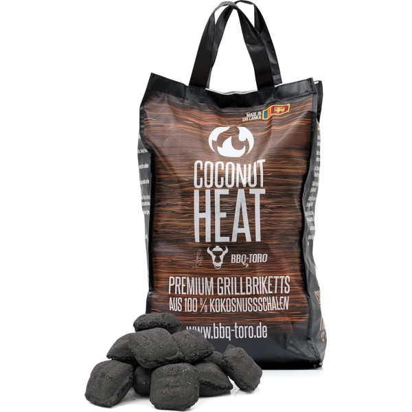 BBQ-Toro Coconut Heat 10 kg | Premium Coconut Grill Briquettes for Long Jobs, 100% Coconut Shells | Coconut Charcoal for Dutch Oven | Coconut Briquettes Grill Charcoal Charcoal Cocos Grill Briquettes