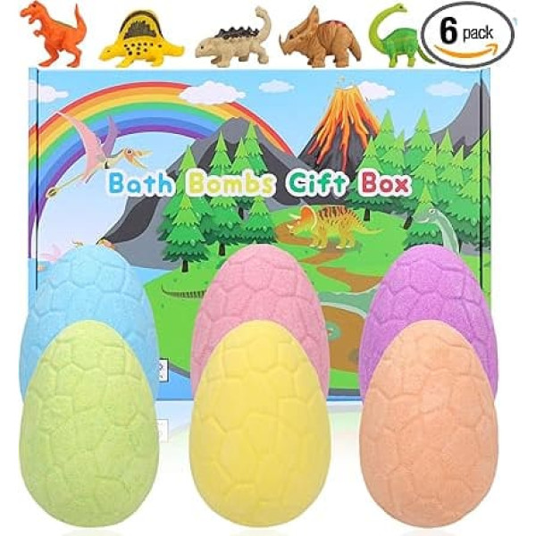 Bath Bombs for Children with Surprise Inside, 6 Pieces Dino Egg Handmade Natural Bath Bombs Dinosaur Toy for Girls Boys Birthday Easter Gift Set