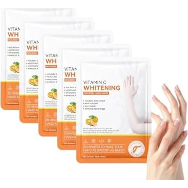 Natural VC for radiant skin: experience the power of vitamin C with our VC whitening hand mask. Enriched with natural vitamin C extracts, this hand mask helps to brighten and balance skin tone, creating a more radiant and youthful appearance. Vitamin C is known for its antioxidant properties that help protect the skin from environmental damage while promoting a healthy glow. Perfect for anyone who wants to achieve a brighter, more radiant complexion on their hands. Moisturising and nourishing formula: Our VC whitening hand mask is formulated to deeply moisturise and nourish your skin. With a blend of moisturising ingredients, it retains moisture and makes your hands feel soft and supple. This gentle yet effective formula helps restore your skin's natural elasticity, making it ideal for dry or rough hands. Enjoy the benefits of moisture and whitening in one convenient product. Easy to use and comfortable: enjoy the simplicity of our VC whitening hand mask. Each pair is pre-soaked and ready to use, making it incredibly practical for a busy lifestyle. Simply slip on and relax for 15-20 minutes. The user-friendly design ensures that you can pamper your hands anytime, anywhere - whether at home or on the go. Change your hand care routine with this quick and effective solution. Soothing aroma for relaxation: treat yourself to a spa-like experience with our VC whitening hand mask. With a gentle, soothing aroma, it soothes your senses while nourishing your skin. The pleasant scent provides extra relaxation and makes this hand mask not only a skin care product, but a mini spa session. Perfect for relaxing after a long day or adding a touch of luxury to your self-care routine. Perfect for a gift or self-care: our VC whitening hand mask is an ideal gift for friends, family or yourself. With its effective formula and luxurious feel, it makes a thoughtful gift for anyone who wants to brighten and moisturise their skin. Whether as a gift or as a personal treat, this hand mask will delight you and make your hands soft, smooth and radiant. › See more product details; Product description Product description Brightening and nourishing hand mask with vitamin C Safety Warning Be careful when it gets into the eyes; Product description Product description Brightening and nourishing hand mask with vitamin C Safety Warning Be careful when it gets into the eyes; Product description Brightening and nourishing hand mask with vitamin C Safety Warning Be careful when it gets into the eyes