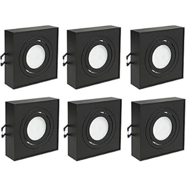 Maclean MCE464B 6x LED Recessed Spotlights Ceiling Light 7 W 490 Lumen 3000 K Warm White GU10 Mounting Frame IP20 (Set of 6 Square, Black)
