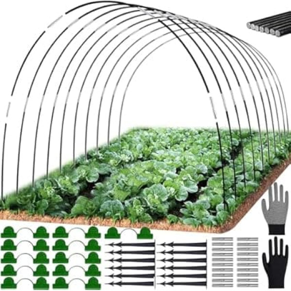 Greenhouse hoop DIY kit includes: 30 pieces large diameter hoop frame, 1 pair of gloves work gloves men women, 20 ports, 20 garden clips and 20 ground nails. You can combine with 5 or more garden stakes to build garden grow tunnel, mini grow tent, small greenhouse, chicken wire and garden arch to meet your needs. High-quality materials: the outer fibreglass layer of the garden tunnel arch is coated with plastic, which is flexible and does not break easily. The removable design saves more space and can be reused. DIY plant tunnel arches: perfect for those who grow flowers and vegetables and love life. You can combine with 3, 4 or even more garden stakes to build different sizes, such as garden growth tunnel, mini grow tent, small greenhouse, chicken wire and garden arch to meet your needs. Wide application: ideal for yards, vegetable gardens and raised garden beds. The greenhouse tyre for plant cover is suitable for indoor or outdoor use, greenhouse tunnel arches are the perfect gift for garden lovers. Customer service: Customer satisfaction is our top priority. If you have any questions about this product, please contact us immediately and we will give you a satisfactory answer. › See more product details; Product description 1; Product description 1; 1