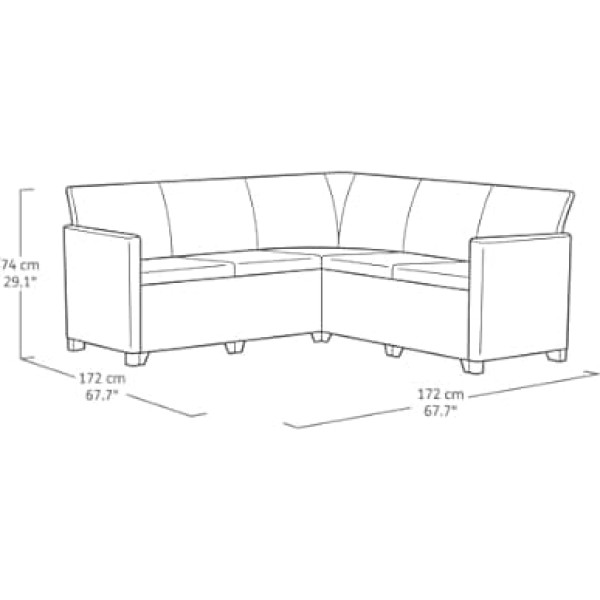 The 5-seater garden furniture set includes practical seat cushions and a side table with storage function (35 L storage space). Ideal for outdoor use: in the garden, on the patio, balcony and veranda. Weatherproof and UV resistant. With ergonomic backrest for extra comfort - relaxing can be so easy. Approximate dimensions: corner sofa 172 x 172 x 74 cm, storage table 37 x 37 x 37 cm The environment is important to us, so the set is made from 89% recycled materials and 100% recyclable. › See more product details