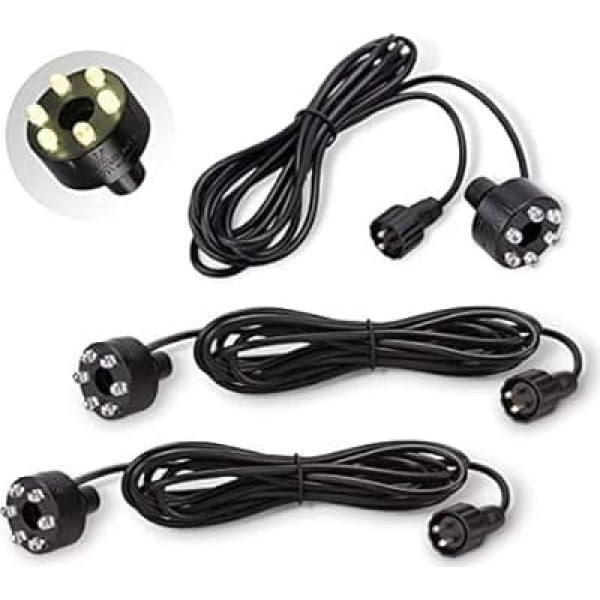 The set contains three LED rings in warm white, these are ideal for illuminating the water outlet of spring stones, fountains or water features. Each LED ring has a 2 metre connection cable with a 2-pin connector including union nut. Furthermore, each LED ring has a replaceable 13 mm or 19 mm hose connection. The LED rings are completely waterproof and work with 12 volt low voltage. The diameter of the LED ring is 32 mm. The delivery is without power supply and without distributor. Matching accessories such as power supply, 3-way distributor, fountain pumps, hose, seals can be found in our other offers. Also available in other colours (see our other listings) › See more product details; Product description The set of 3 LED rings is completely waterproof and can be installed e.g. in the outlet of a spring stone, in the stream or completely underwater. The lighting is in warm white and creates a cosy atmosphere around your water feature. So that the LED rings can be mounted directly on the water outlet, each ring has a 13 mm and a 19 mm hose connection. So the water can be dispensed directly through the ring, e.g. in a fountain or spring stone. If you want to use the LED rings for indirect lighting, the hose connection can be removed and the LED rings can be installed hidden. Attention, power supply not included. Data: 3 x CLGarden LED rings. With 6 warm white LEDs. Diameter LED ring 32 mm. Includes ½ inch and 3/4 inch hose connection (approx. 13 mm / 19 mm). Removable hose connection. 2 metre connection cable. 2-pin connector with approx. 15 mm (inside) union nut. Operation on 12 V.; Product description The set of 3 LED rings is completely waterproof and can be installed e.g. in the outlet of a spring stone, in the stream or completely underwater. The lighting is in warm white and creates a cosy atmosphere around your water feature. So that the LED rings can be mounted directly on the water outlet, each ring has a 13 mm and a 19 mm hose connection. So the water can be dispensed directly through the ring, e.g. in a fountain or spring stone. If you want to use the LED rings for indirect lighting, the hose connection can be removed and the LED rings can be installed hidden. Attention, power supply not included. Data: 3 x CLGarden LED rings. With 6 warm white LEDs. Diameter LED ring 32 mm. Includes ½ inch and 3/4 inch hose connection (approx. 13 mm / 19 mm). Removable hose connection. 2 metre connection cable. 2-pin connector with approx. 15 mm (inside) union nut. Operation on 12 V.; The set of 3 LED rings is completely waterproof and can be installed e.g. in the outlet of a spring stone, in the stream or completely underwater. The lighting is in warm white and creates a cosy atmosphere around your water feature. So that the LED rings can be mounted directly on the water outlet, each ring has a 13 mm and a 19 mm hose connection. So the water can be dispensed directly through the ring, e.g. in a fountain or spring stone. If you want to use the LED rings for indirect lighting, the hose connection can be removed and the LED rings can be installed hidden. Attention, power supply not included. Data: 3 x CLGarden LED rings. With 6 warm white LEDs. Diameter LED ring 32 mm. Includes ½ inch and 3/4 inch hose connection (approx. 13 mm / 19 mm). Removable hose connection. 2 metre connection cable. 2-pin connector with approx. 15 mm (inside) union nut. Operation on 12 V.