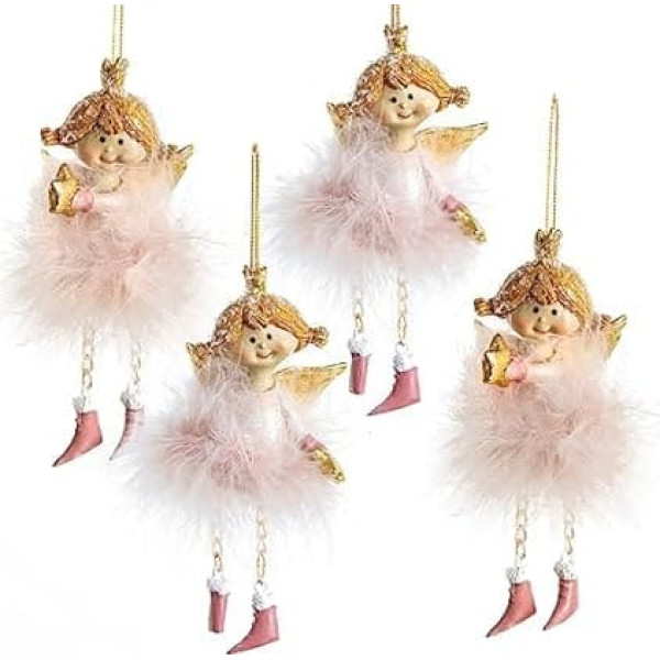 Logbuch-Verlag 4 Pink Angel with Feathers Christmas Hanging Hanging Guardian Angel Rose Gold 12 cm