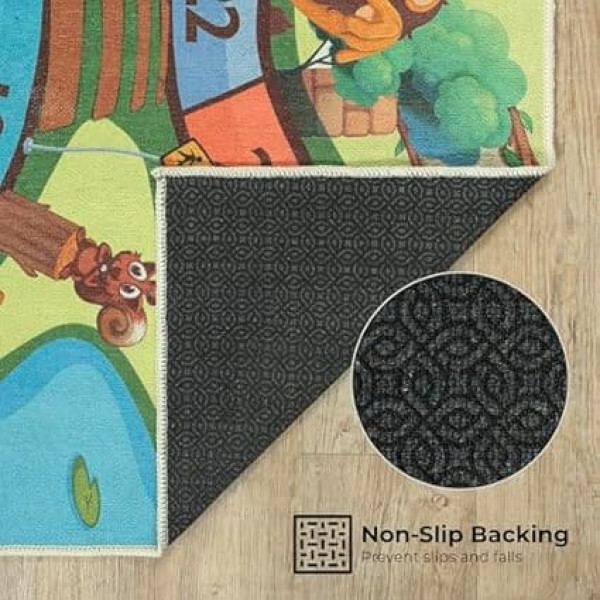 Either wipe clean or throw in the washing machine at 30 C - enjoy the convenience of this machine washable rug Prevent slips and falls with our rugs that have a non-slip backing to ensure a secure footing and extra safety for your home. Effortlessly clean, hypoallergenic, durable and lint-free, our rugs are perfect for homes with pets and allergy sufferers. Share our love of the planet by choosing our deliberately made, eco-friendly rugs for your home. Perfect for your child's bedroom or playroom. You will love this kids rug with bright multicolor design in two sizes. › See more product details