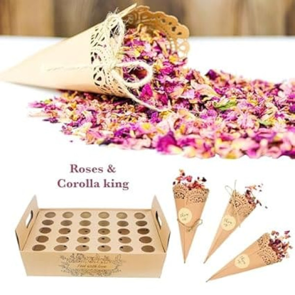 EXCLUSIVE DRIED FLOWERS: 36 bags of natural high quality rose petals including lavender for your wedding, birthday, party or other festivities WEDDING DECORATION Add a romantic ambiance to your wedding with our dried rose and lavender petals - great as confetti, candle or resin accompaniment PREMIUM QUALITY Our dried flowers are carefully harvested and gently dried to preserve their natural beauty and durability Versatile use: the dried flowers can be used not only as a decoration, but also as a fragrant room accessory or as a natural means of stress relief › See more product details; Product description Discover the petals of dried flowers CULTIVEA
